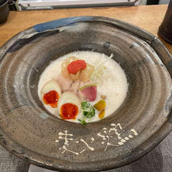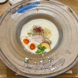 (水)11時すぎ、待ちなし。ドンブリはシンプルなものに変更?白ベースに原色が鮮やかなビジュアル。滑らかでコク深いスープ、泡は不要かな?喉越し良く、プチっとしたっ食感が心地よい麺。丁寧な造りの鶏白湯、美味しい。立地柄ほぼインバウンド、滞在時間も長く、流れが遅いので予め認識しておく必要があると思う。
