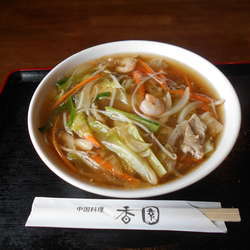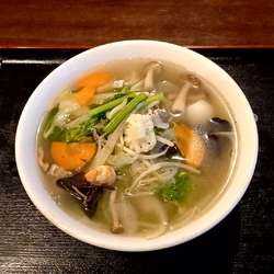 あっさりした塩味のスープに豚肉と海老・沢山の野菜やキノコをたっぷり使用した本格的な一杯。