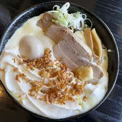 苫小牧の方に紹介いただきこちらでランチ。泡系メニューも気になったのですが、表題をポチッと。こくとろのネーミングだったので粘度高めなのかと思いましたが、そこまでは高くなく飲みやすいスープ。目を引くのは大きいキクラゲ。食感も最高でした。メンマも結構入っており、麺と一緒に食べるのが楽しい。途中、卓上のニンニク、生姜をたっぷり投入して完食完食です。他にも気になるメニューがあるので再訪で... 続きを見る