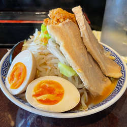 さておき表題をオーダー、暫しで着丼。店名の通り富士山の如きボリューム満点のビジュアルです!二郎系と称される所以ですね。まずはスープを一口。豚骨醤油にニンニクを効かせた正に二郎系のそれです。とは言え、全般に出汁も味も薄めで、奥行き... 続きを見る