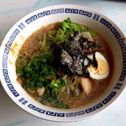 時期によりちがうのかもしれませんが、今日は白菜たっぷりの野菜醬油ラーメン。豚バラ・たまご・もみ海苔のトッピングです。