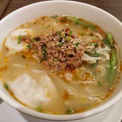 スープは、茶濁しているがライト。カエシは穏やかで、何ベースか分かりづらい。具材の、挽肉や揚げねぎで食わせる印象。