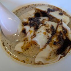 卓上のタレとラー油と酢を自分好みにかけてから頂きました。焼き餃子と違って、水餃子は皮がもちもちでボリュームあって美味しかったです。