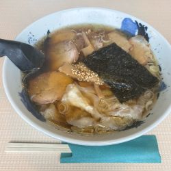 コシがとてもある麺と対照的にワンタンの皮は極薄で金魚のヒレのようだ。