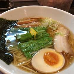 スープは、醤油の甘みと煮干し出汁が自然に感じられる心地よいカエシと出汁のバランスが良いうえに、柚子や水菜でより一層爽やかさが演出されており、どんどん飲めちゃうタイプです。さらに、卓上のカツオ節を乗せれることで、パンチ力が増し、全つゆ余裕でした(´>∀<`)ゝ