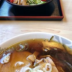 汁、麺おいしい。前はもう少し縮れてたような気がする。夏は冷やし中華もあるやざる中華もあるんだね。暖かい醤油ラーメンが一番。