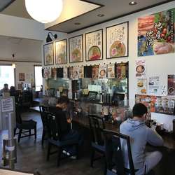店内は広く右手が製麺室、中央が厨房とカウンター4席、左手がテーブル12席と座敷16席。