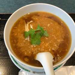 蟹味噌の餡かけを載せた醤油ラーメン。