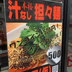 | メニュー | メニューの写真を見る 汁なし担々麺 500円(180g) |