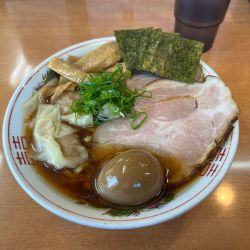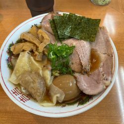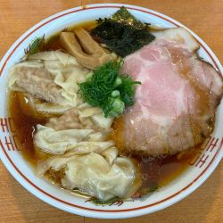 ワンタンはつるんとしてアンもたっぷり。麺はツルツルシコシコ。大判チャーシューは二枚搭載され食感良好なうまいやつ。