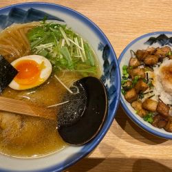 南町田グランベリーパークにお買い物。14時過ぎとはいえ8割の入り🍜阿夫利といえばの柚子塩。思ったより濃厚な塩スープに柚子の風味がバッチ🍜コロチャーご飯が思ったよりボリューム満点💯2つでお腹いっぱいです😋大満足です。