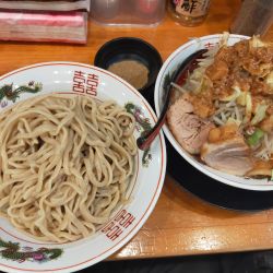 | 備考 | 麺:自家製極太麺 ※麺量:プチ230g、小350g、大500g ※麺のかためは出来ない。(標準でかため) 卓上調味料(にんにく・しょうが・カラメ・酢・コショウ・一味・マヨネーズ) |