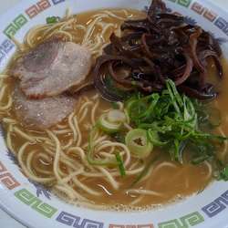 筥崎宮の参道横にある、焼鳥メインのお店、花山で豚骨ラーメン¥650円を頂きました。昔は屋台だった事で有名だそうですが今も屋台風広め店舗で良い雰囲気のなか食事ができます。さてラーメンですがスープは無添加でありながら塩分、濃さ、香りはちょうどよい感じです、また中細麺との相性も良く美味しく頂きました。昔ながらの懐かしい豚骨ラーメンです。