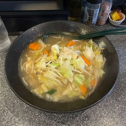 ラーメンに野菜炒めを載せた、罪悪感を抑えられる一品