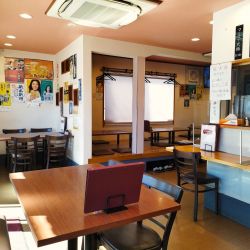 座席カウンター6席、テーブル12席、小上がり12席