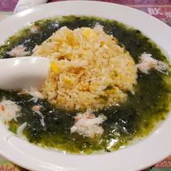 【注文】炒飯青のりソース蟹肉添え(1100円)。