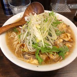 柑橘のすっきりとした香りは、終始一貫食事の主役。少しほろ苦さもあるため、果汁は自家製かも知れない。鰹が主体、魚介ベースのスープゆえ、飲み口はあっさり、されど旨味に骨太さを覚える仕上げは独特で、蓮華が忙しない。