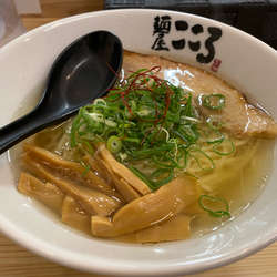 塩そば(800円)を。スープは、あまり塩ベースっぽくない印象。白醤油とか使ってるのかな。油分は少なめで、旨味はばっちり。麺は、シャキッとしたストレート細麺。具は、糸唐辛子・ネギ・メンマ・炙りチャーシュー・味玉半身。担々麺系のメニュー狙いだったが、汁ありは見当たらず。店舗によりメニューが違うのかな。こころは麺屋 こころ 蒲田店以来、6店舗目の訪問でした。