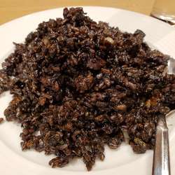 どっさりと乗った挽肉で食べる。ミートソースのようなビジュアル。