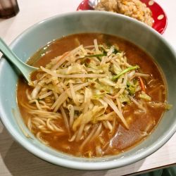 もやしラーメンは餡かけではなく、モヤシ炒めのラーメン。