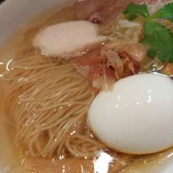 土佐の鰹節⁇と日高昆布からの和風出汁に数種類の塩だそうです 独特な香味油、香りは控えめだったがファーストタッチはええ感じ 嫌なケミカル感はないが後半失速 動物系レスなのかな? そう... 続きを見る