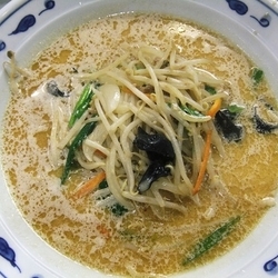 でかい丼で配膳。見た目の色合いからも分かる通り、牛乳牛乳しすぎず、味噌の風味をしっかりと残したまま、牛乳のコクも感じさせ、ピリ辛な刺激でメリハリをつけている。また、炒め煮した具材からの旨みも加わり、マイルドな中にも起伏があって、ついついレンゲが進む。