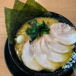 贅沢に豚骨を使い、手間をかけて旨味だけを抽出した筆意なき味わいの濃厚スープ。口に入れた時のとろりとした舌触り、ポタージュのような芳醇な風味と、ガツンとくる骨太な豚骨の旨味。こってり濃厚な味わいの中にも臭みのないさっぱりした清々しさ。味は「豚骨醤油」「豚骨塩」をご用意しております。「旨かった!」「また来るよ」私たちはその期待に応えるべく、日々精進し、家系ラーメンを進化(深化)させ続けます。