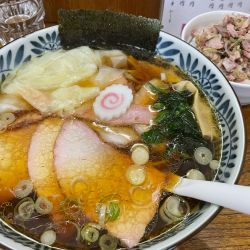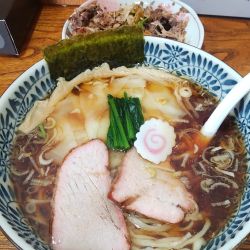 あっさり濃いめの醤油ベース鶏ガラのコクは素晴らしい。中細縮れ麺(手揉み)スペシャル縮れ麺、シナチク穂先はコリっと食感良く、味玉良好、チャーシューモモがイマイチだったのでこの点数。