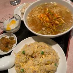 ワンタン麺(880円)を。スープは、淡い琥珀色。八角っぽいアクセントを感じる。最初、ワンタン由来かと思ったが、そうではない。麺は、しなやかな中細ストレート。この麺も好印象。具は、ネギ・ほうれん草・ワンタン7つかな。ワンタンは、餡がしっかりとしていて、この数は嬉しいです。