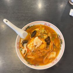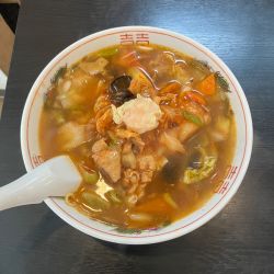 ここの定番はなんと言ってボリュームのある広東麺。ラーメン屋とういうか町中華です。味も具もしっかりして海老のフライは1個乗ってます。巨は辛バージョンでしたがオリジナルも良し👌