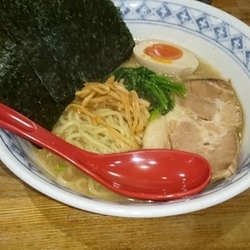 麺は家系の特徴である太め麺は噛みごたえがあり、スープは豚骨醤油ながらもあっさりとしていました。