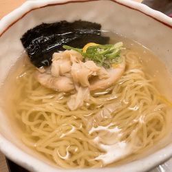 スープは優しい鯛ダシにタケノコと柚子の皮がトッピングされて爽快感ある一杯です。