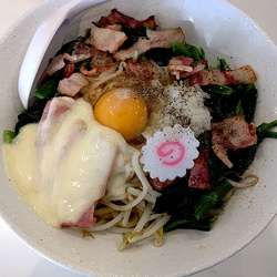 牛乳とチーズで中華カルボナーラ。
