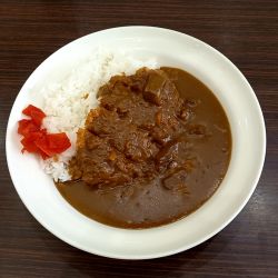 豚肉たっぷりでアツアツ中辛のカレーうどん。