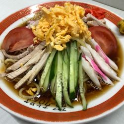 ってな訳で、業務が早く終わったのでお気に入りの「豊島屋」さんで軽く一杯。ビールと唐揚げ、餃子などをシェアし〆に今季初の「冷やし中華」¥700-を。20円程値上げされたようですね。