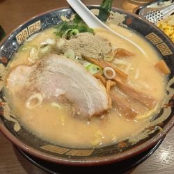 超ドロドロのゴマダレ?風の冷たいスープの味噌?ラーメンです。これってどこら辺に味噌要素があるんだろうか… 具材は通常の味噌ラーメンと同じなんでしょうかね。夏場は冷やしラーメンが美味いっすな。