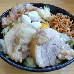 | 備考 | ハイパーファットンのまぜそば専門店。 麺量…小300g、ミニ150g 行列時は、先に食券を買ってから並ぶ。(代表待ち禁止) 限定メニューは、公式ツイッター参照。 食券を渡す際、以下の無料トッピングがコール可能。 ・ニンニク、ニンニクマシ、ニンニクマシマシ ・アブラ、アブラマシ |