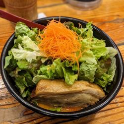 ちょい縮れの中細麺で弾力のある硬めの茹で上がり