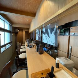 10席たらずのカウンターのみの店内。正午前なのにすでにほぼ満席。