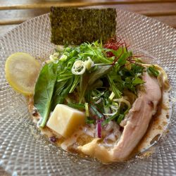 券売機にて表題(1400円)を買い、食券を渡し外のテラス席に連れと座りました。