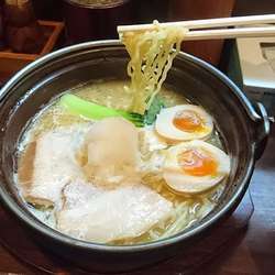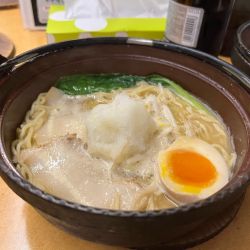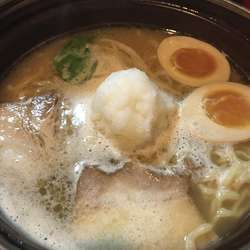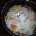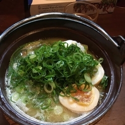 看板に偽りなしの熱々土鍋に盛られた一杯をスープから頂くと濃厚鶏白湯とありましたがそこまで濃厚ではなくあっさり目で別皿の青ネギ中央に盛られた大根おろしをあわせると尚あっさり感がUPしますので飲んだ後の〆には良き、すこし柔わめに... 続きを見る