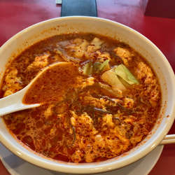 スープのベースは多分味噌だと思います。そのスープにたくさんの唐辛子が入って辛味をつけています。ただ私は中辛にしましたが、そこまで辛い感じはせず、正に旨辛という表現が合います。辛いのが好きな人は大辛以上にした方が良いでしょう。麺は中華麺縮れにしましたが、スープによく合っていました。具にはキャベツや挽肉、玉子が入っていて、お互いに味を引き立てていました。