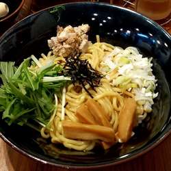 トッピングは半熟味玉1/2×2、こげ茶色のタレがかかった茹でも... 続きを見る