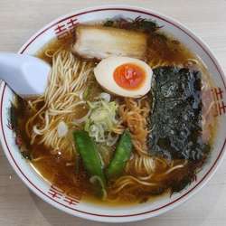 細麺の中華そばと悩んだものの、太麺のラーメンをチョイス。周りを見渡すと細麺の中華そばを選ぶ方が多かったかな。