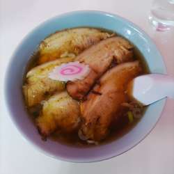見た目は佐野ラーメンらしくないニンニク付き札幌ラーメンのようですがスープは鶏ガラ系醤油に佐野ラーメンの平打ち麺、トッピングのコーンやわかめも相性がいいですねチャーシューも柔らかくスルスルと食べられます。