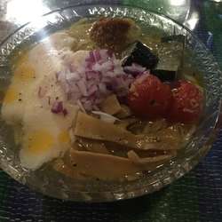 | メニュー | メニューの写真を見る グリーンカレーラーメン850円 |