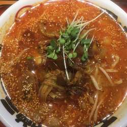 中濃ベースやや辛い程度、ニンニクチップ大量、バラ肉、少々のキャベツ、味噌コクは素晴らしい。中太縮れ麺がとてもスープに合う。とても美味しいです。