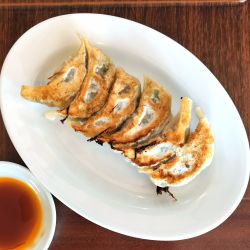午前中の用事を終え、この日のランチはヒデジン餃子さん。入店すると早速ご店主さんがご挨拶に来てくれますので、大好きな辛ラーメンと、オリジナル餃子450円+税をコールします。ワンオペのはずなのに、同時に着丼・着皿する手際の良さよ♪