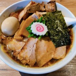 ショウガと醤油のバランスを考え、常にスープをブラッシュアップしている。多加水の自家製麺は+50円で「極太手揉み麺(数量限定)への変更も可能。限定メニューも随時登場。