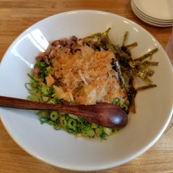 ローストポーク3、青ネギ、玉ねぎみじん切り、細もやし